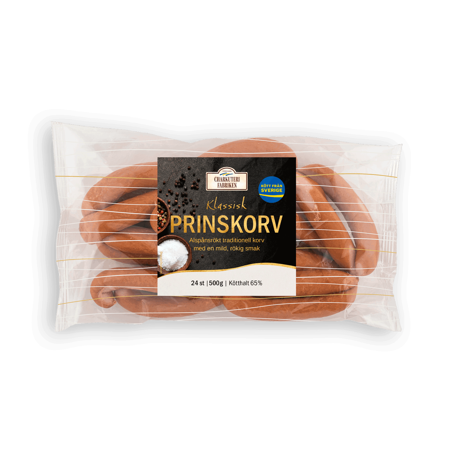 Ge dina smaklökar en kunglig behandling med Charkuterifabrikens prinskorv! Varje tugga genom strålar högkvalitativt svenskt kött, noggrant kryddad för att leverera den goda smakbalansen mellan tradition och innovation.