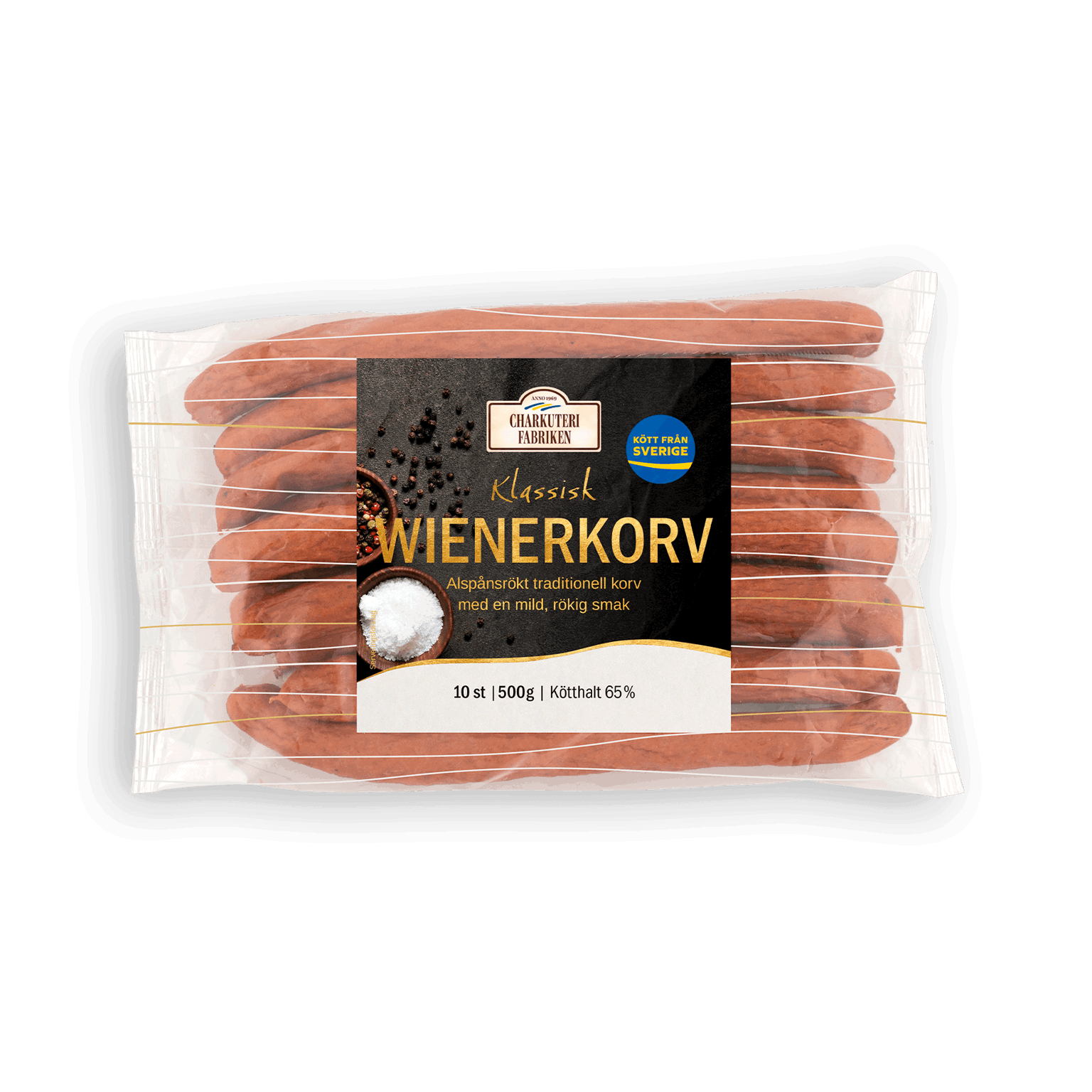 Korv x 500 gEn klassisk wienerkorv, tillverkad på traditionellt vis med en allsidig kryddning för att passa alla tillfällen. Oavsett om den kokas eller steks, ger den det härliga knäcket som bara en wienerkorv av hög kvalitet kan leverera. I ett bröd blir Charkuterifabrikens wienerkorv alltid en favorit. Smaken av lök, muskot, ingefära och det högkvalitativa köttet skapar en perfekt måltid. Givetvis endast gjord med kött från svenska gårdar.