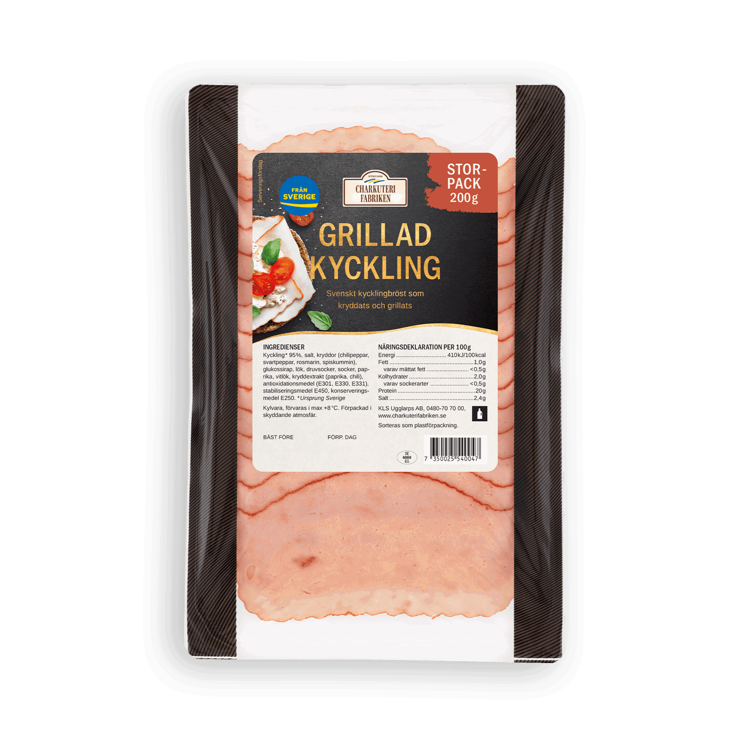 Ingredienser: Kyckling* 95%, salt, kryddor (chilipeppar, svartpeppar, rosmarin, spiskummin), glukossirap,lök, druvsocker, socker, paprika, vitlök, kryddextrakt (paprika, chili), antioxidationsmedel (E301, E330, E331), stabiliseringsmedel E450, konserveringsmedel E250. *Ursprung Sverige.