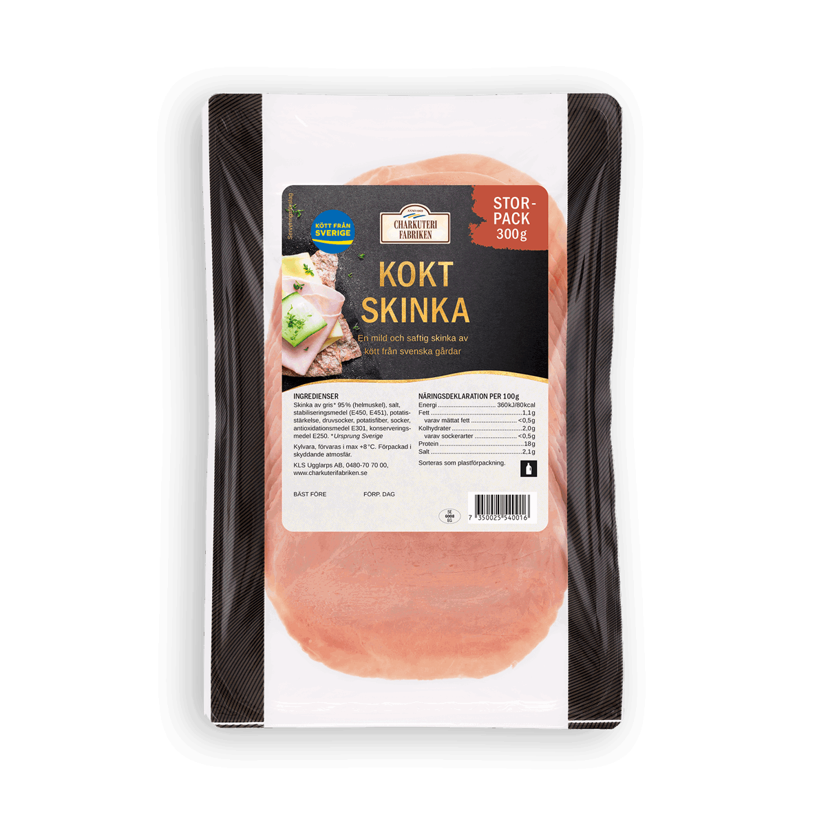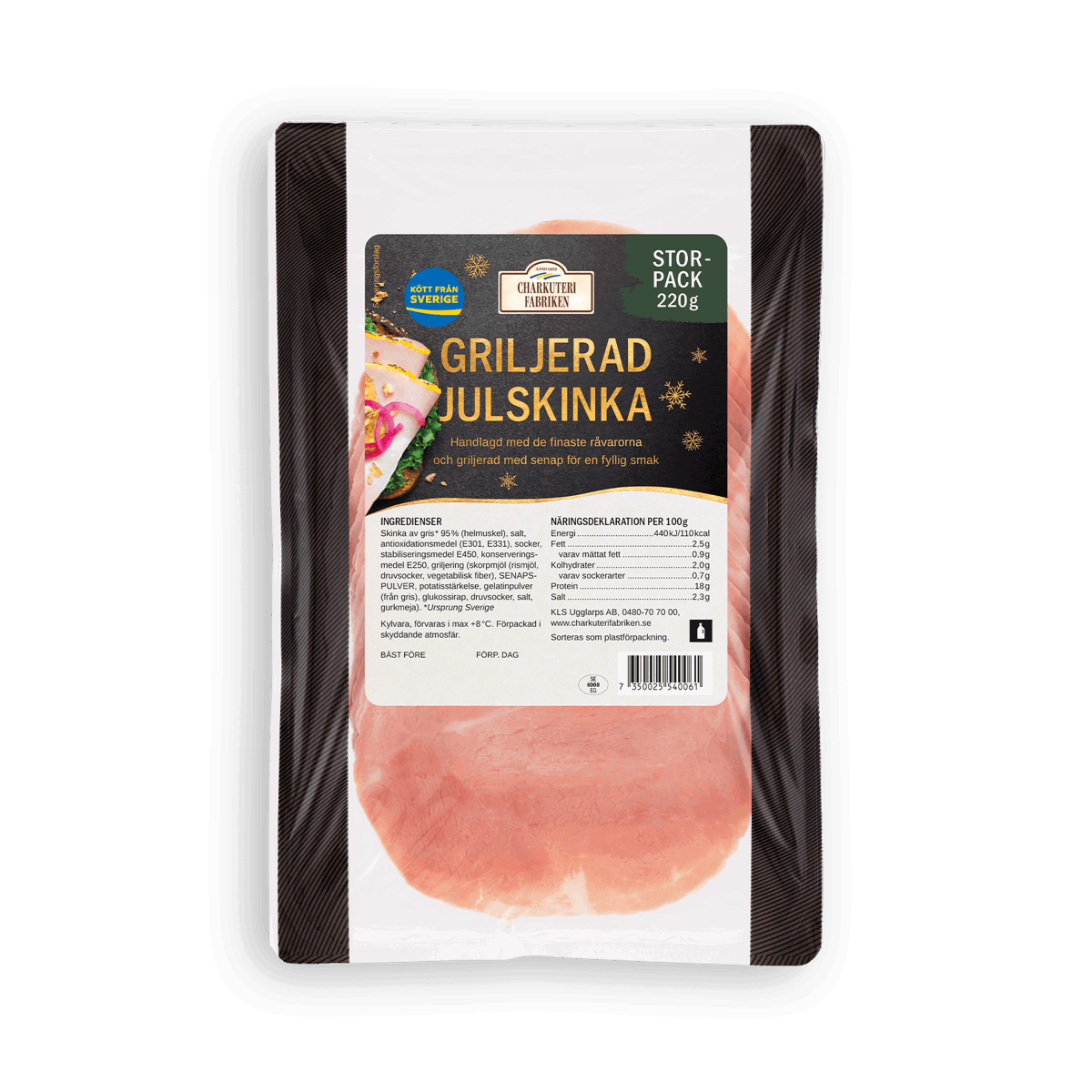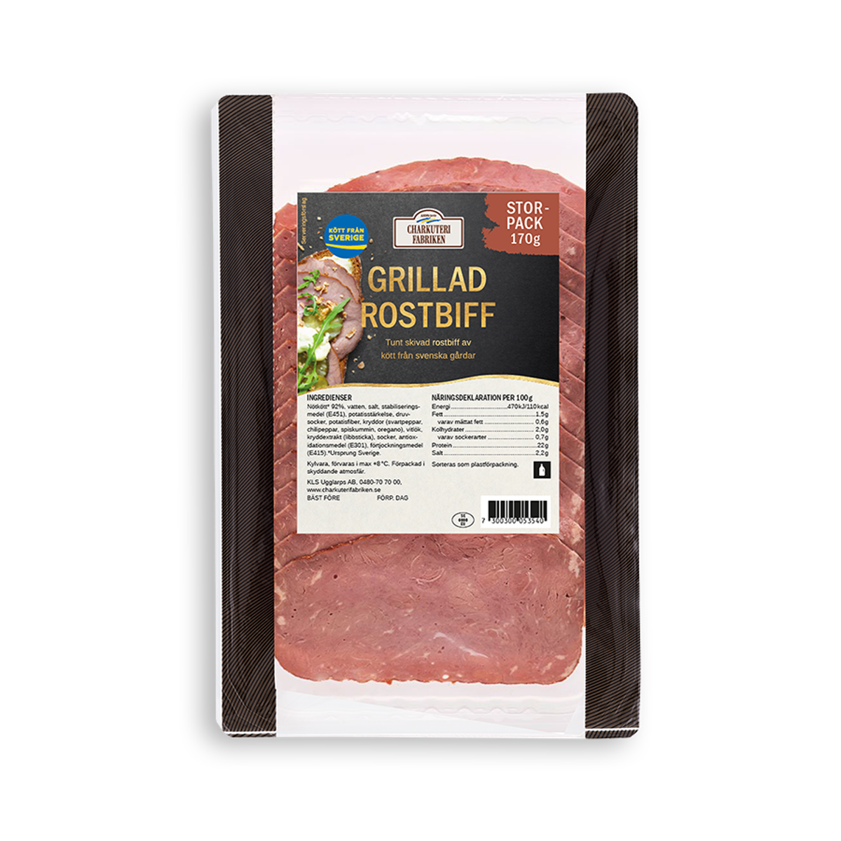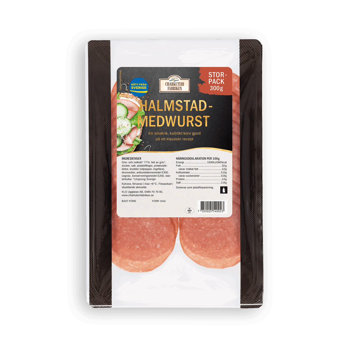 Ingredienser: Gris*- och nötkött* 80%, fett av gris*, salt, kryddor (svartpeppar, vitpeppar), socker, druvsocker, animaliskt protein (från nöt), vitlök, antioxidationsmedel E301, konserveringsmedel E250, starterkultur. *Ursprung Sverige.